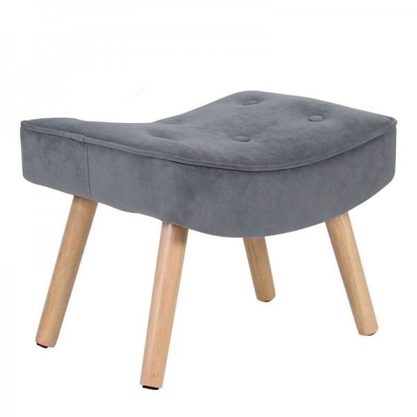 Σκαμπό - Υποπόδιο, Ύφασμα Velure Γκρι, Πόδια Φυσικό, K/D