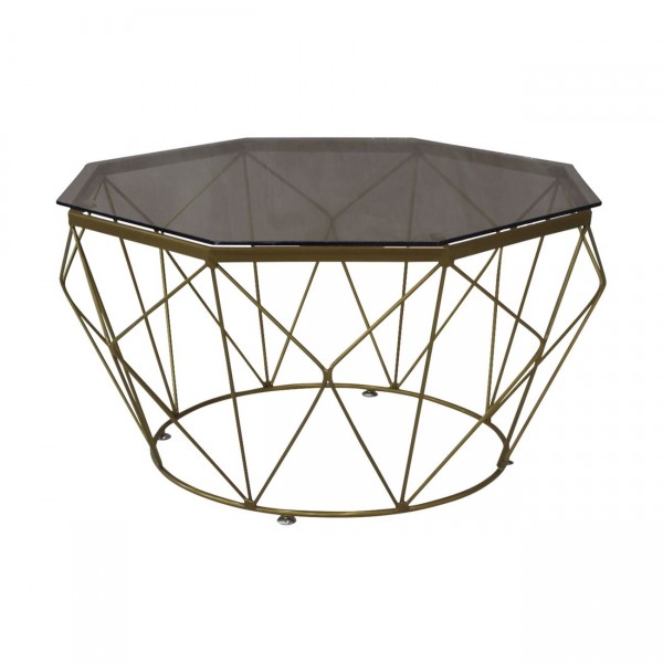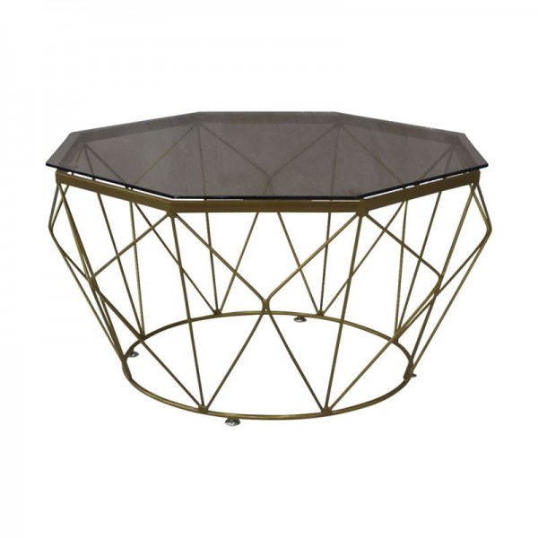 Τραπεζάκι Σαλονιού Οκτάγωνο, Μέταλλο Βαφή Χρυσό Γυαλί Tea Colour Tempered