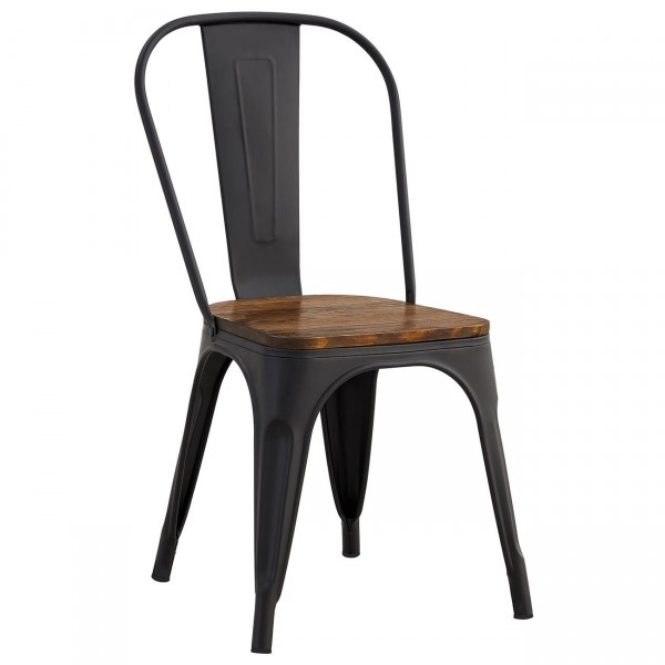 Intra Wood Καρέκλα Μέταλλο Βαφή Μαύρο Extra Matte Κάθισμα Dark Oak Στοιβαζόμενη