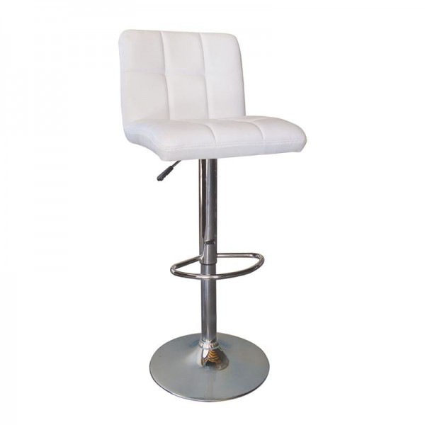 Σκαμπό BAR με Πλάτη, Χρώμιο, PU Άσπρο, Ρυθμιζόμενο Ύψος, Περιστρεφόμενο