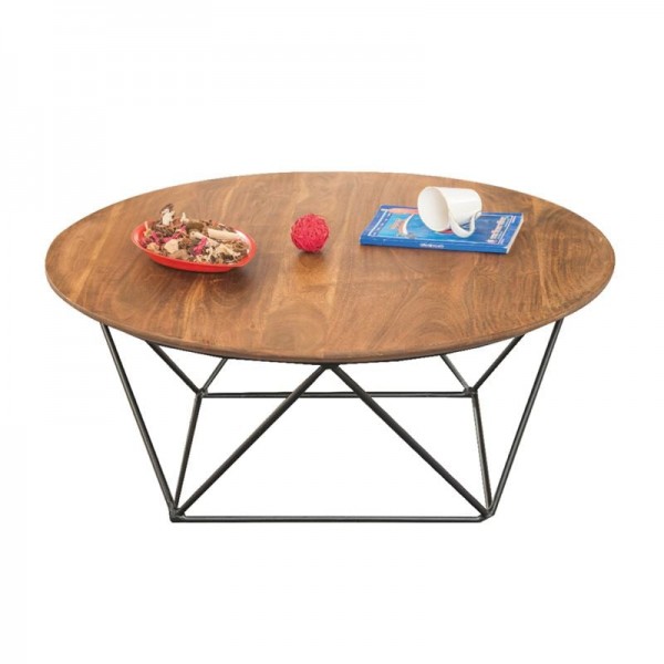 Τραπεζάκι Σαλονιού Καθιστικού, Μέταλλο Βαφή Μαύρο, Ξύλο Ακακία Φυσικό