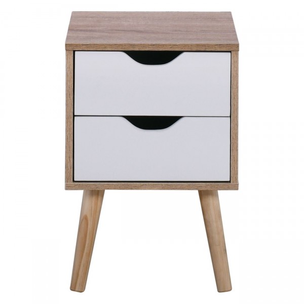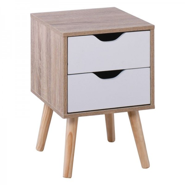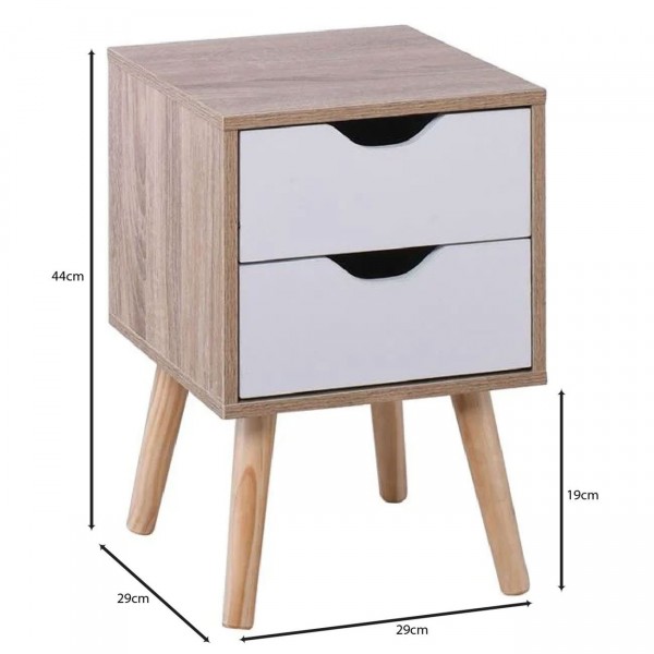 Κομοδίνο Απόχρωση Sonoma - Άσπρο - Πόδι Φυσικό