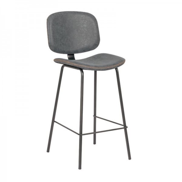 Σκαμπό ΒAR με Πλάτη, Μέταλλο Βαφή Μαύρο, PU Απόχρωση Vintage Grey