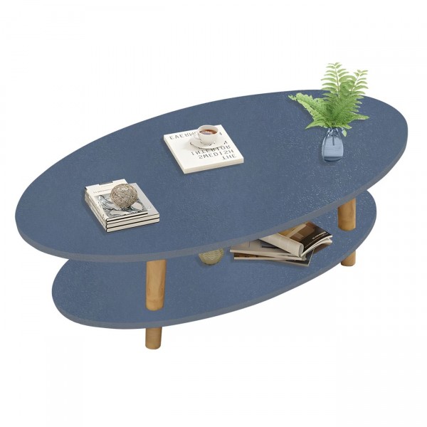 Oval Τραπεζάκι Σαλονιού Καθιστικού με Ράφι Γκρι Φυσικό c533380