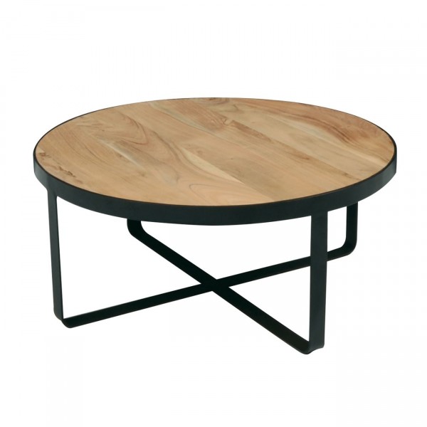 Τραπεζάκι Σαλονιού Καθιστικού OWN Μέταλλο Βαφή Μαύρο Ξύλο Ακακία Φυσικό Φ80xH35cm c530869