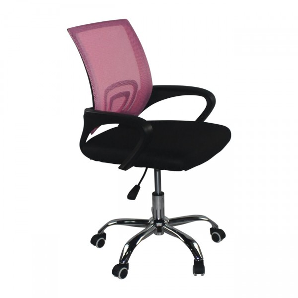 Πολυθρόνα Γραφείου χωρίς Ανάκλιση, Μέταλλο Χρώμιο Mesh Ροζ - Μαύρο