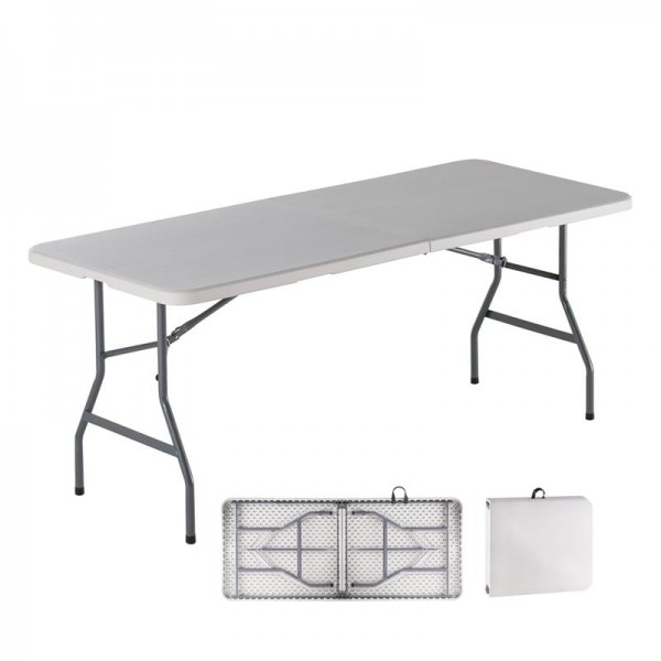 Τραπέζι Συνεδρίου - Catering Πτυσσόμενο (Βαλίτσα), Μέταλλο Γκρι, HDPE Άσπρο 40mm