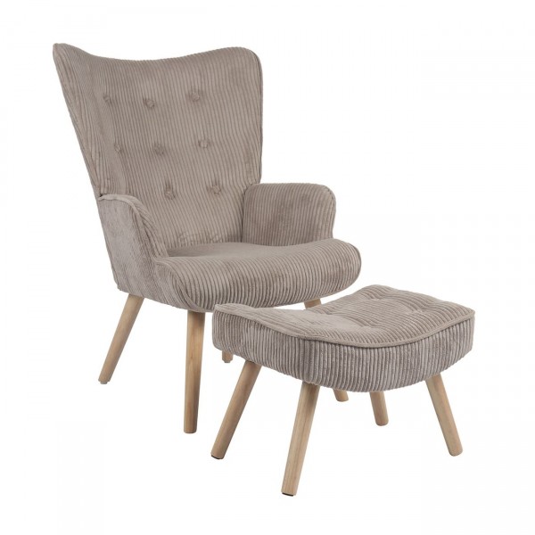 Alio Πολυθρόνα - Μπερζέρα με Σκαμπό - Υποπόδιο Φυσικό Ύφασμα Κοτλέ Ανοιχτό Καφέ, K/D