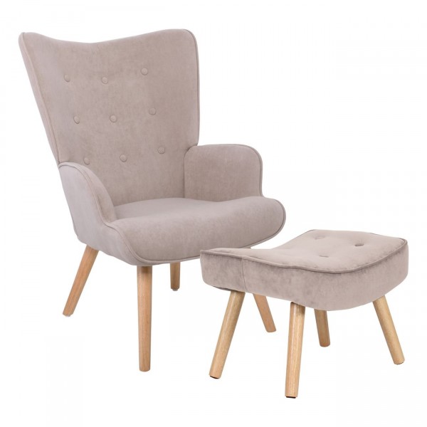Πολυθρόνα - Μπερζέρα με Σκαμπό - Υποπόδιο Φυσικό Ύφασμα Velure Ανοιχτό Καφέ,K/D