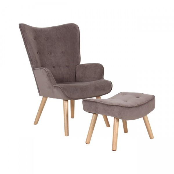 Πολυθρόνα - Μπερζέρα με Σκαμπό - Υποπόδιο Φυσικό Ύφασμα Velure Καφέ, K/D