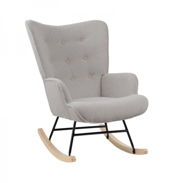 Alio Rocking Πολυθρόνα Μπερζέρα Καθιστικού Teddy Ύφ Αν Γκρι Βάση Μαύρο Φυσικό c533020