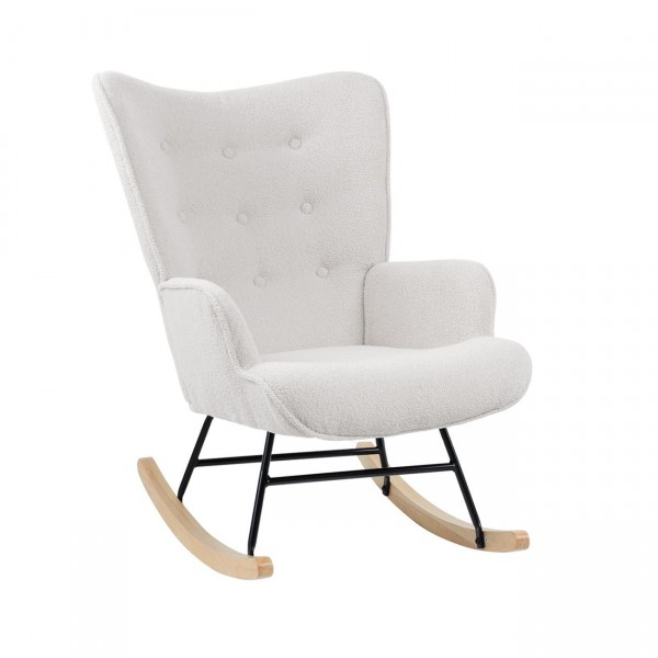 Rocking Πολυθρόνα Μπερζέρα Καθιστικού, Teddy Ύφ.Άσπρο, Βάση Μαύρο-Φυσικό