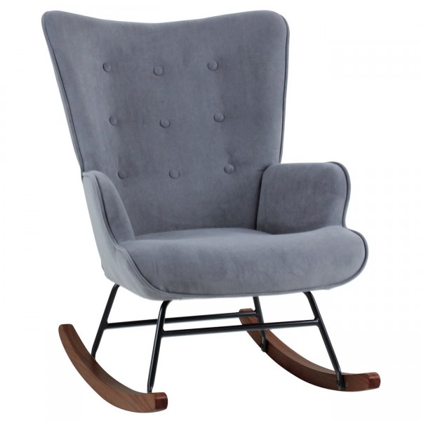 Rocking Πολυθρόνα Μπερζέρα Καθιστικού, Ύφασμα Velure Γκρι, Βάση Μαύρο-Καρυδί