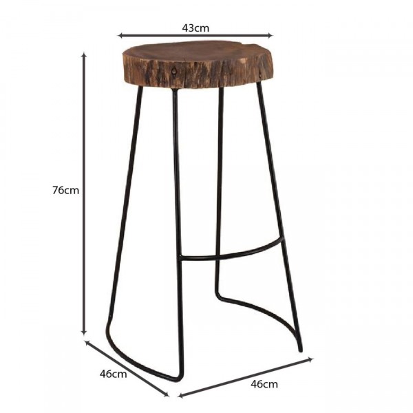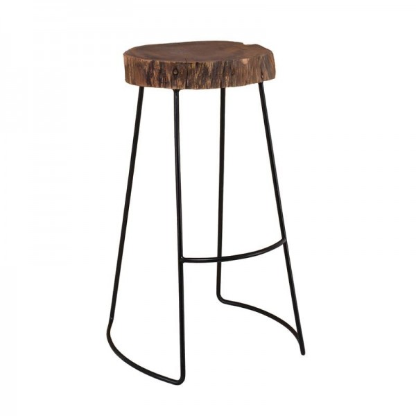 Σκαμπό BAR, Μέταλλο Βαφή Μαύρο, Ξύλο Ακακία Φυσικό
