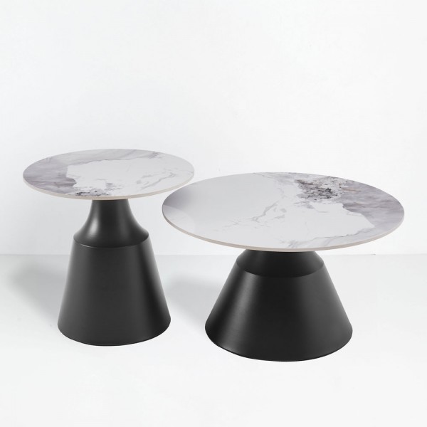 ATRIUM COFFEE TABLE SET 2ΤΕΜ ΛΕΥΚΟ ΜΕ ΟΨΗ ΜΑΡΜΑΡΟΥ ΜΑΥΡΟ 70x70x38cm c503897
