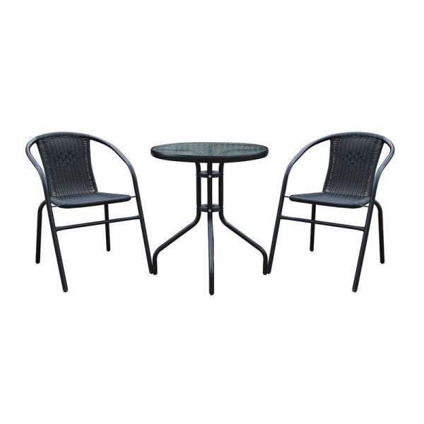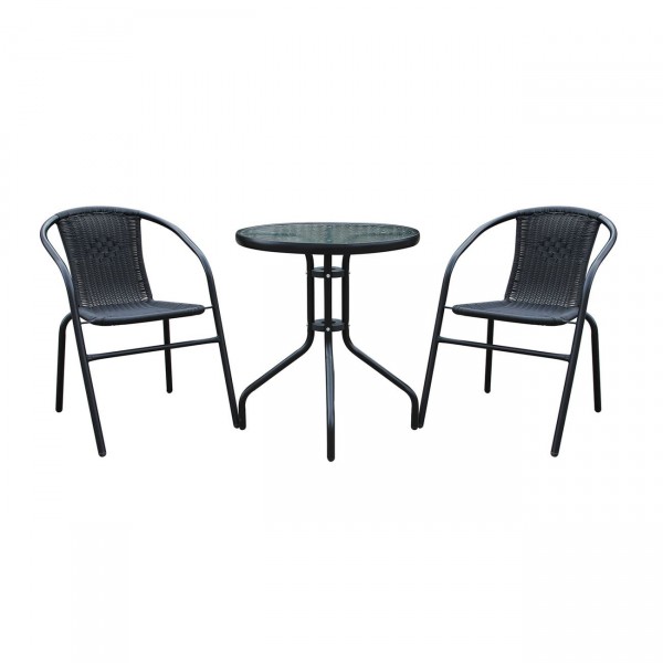 BALENO Set-Pro Κήπου-Βεράντας: Τραπέζι + 2 Πολυθρόνες Μέταλλο Μαύρο, Wicker Μαύρο