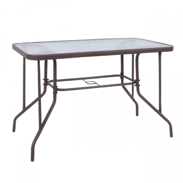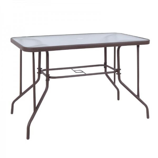 Τραπέζι Κήπου Βεράντας, Μέταλλο Βαφή Καφέ, Γυαλί Tempered
