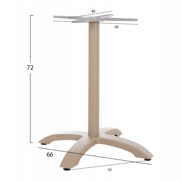 Η ΗΜ460.25 είναι βάση για τραπέζι σε ΚΑΠΟΥΤΣΙΝΟ ΜΑΤ χρώμα. Είναι κατασκευασμένη από αλουμίνιο και στηρίζεται σε μια 4-νυχη βάση. Το καπάκι που θα διαλέξετε στηρίζεται σε έναν «σταυρό», με αποτέλεσμα να μπορεί να δεχθεί τόσο στρογγυλά καπάκια, όσο και τετράγωνα. Επίσης, στο κάτω μέρος της διαθέτει ρυθμιστές ύψους (ρεγουλατόρους). Ιδανική πρόταση για συνδυασμό με επιφάνειες σχεδόν κάθε είδους, όπως βερσαλίτες, HPL, MDF, κτλ.