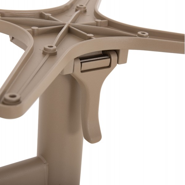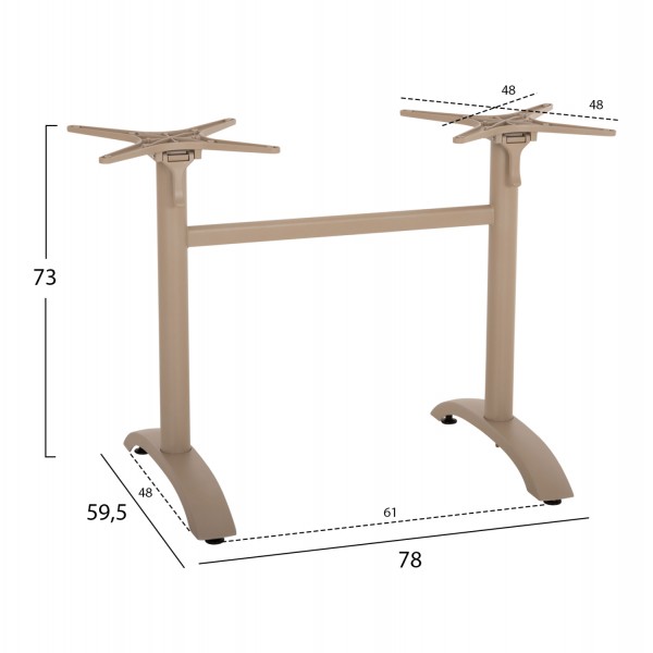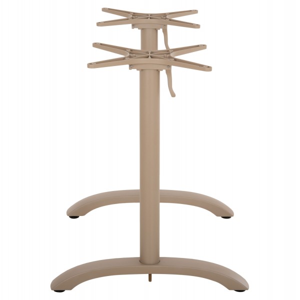 Η ΗΜ468.25 είναι βάση/πόδια για τραπέζι σε ΚΑΠΟΥΤΣΙΝΟ ΜΑΤ χρώμα. Αυτή η βάση είναι ΑΛΟΥΜΙΝΙΟΥ με δύο κολώνες (πόδια) που στηρίζονται σε αντίστοιχες αψίδες. Η επιφάνεια που θα επιλέξετε στηρίζεται σε δύο «σταυρούς», οι οποίοι μάλιστα είναι αναδιπλούμενοι για ευκολία κατά την αποθήκευση! Επίσης, στο κάτω μέρος των ποδιών/αψίδων διαθέτει ρυθμιστές ύψους (ρεγουλατόρους). Ιδανική πρόταση για συνδυασμό με επιφάνειες σχεδόν κάθε είδους, όπως βερσαλίτες, HPL, MDF, κτλ.
