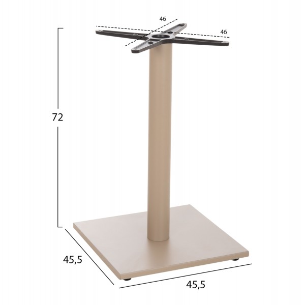 Η ΗΜ475.25 είναι βάση για τραπέζι σε ΚΑΠΟΥΤΣΙΝΟ χρώμα. Αυτή η βάση είναι αλουμινίου με μία κολώνα η οποία στηρίζεται σε μια βαριά επίπεδη μεταλλική επιφάνεια. Το χαρακτηριστικό που κάνει αυτή την βάση ιδιαίτερα πρακτική είναι ότι το καπάκι που θα διαλέξετε στηρίζεται σε «σταυρό», με αποτέλεσμα να μπορεί να δεχθεί τόσο στρογγυλά καπάκια, όσο και τετράγωνα. Επίσης, στο κάτω μέρος της διαθέτει ρυθμιστές ύψους (ρεγουλατόρους). Ιδανική πρόταση για συνδυασμό με επιφάνειες σχεδόν κάθε είδους, όπως βερσαλίτες, HPL, MDF, κτλ.