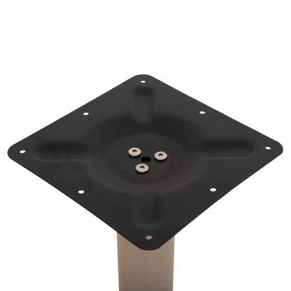 Η ΗΜ421.25 είναι βάση για τραπέζι σε ΚΑΠΟΥΤΣΙΝΟ ΜΑΤ χρώμα. Διαθέτει μεταλλική κολώνα η οποία στηρίζεται σε μια βαριά τετράγωνη μεταλλική βάση με τσιμέντο για χαμηλό κέντρο βάρους. Το καπάκι που θα διαλέξετε στηρίζεται σε μια μεταλλική τετράγωνη επιφάνεια, με αποτέλεσμα να μπορεί να δεχθεί τόσο στρογγυλά καπάκια, όσο και τετράγωνα. Επίσης, στο κάτω μέρος της διαθέτει ρυθμιστές ύψους (ρεγουλατόρους). Ιδανική πρόταση για συνδυασμό με επιφάνειες σχεδόν κάθε είδους, όπως βερσαλίτες, HPL, MDF, κτλ.