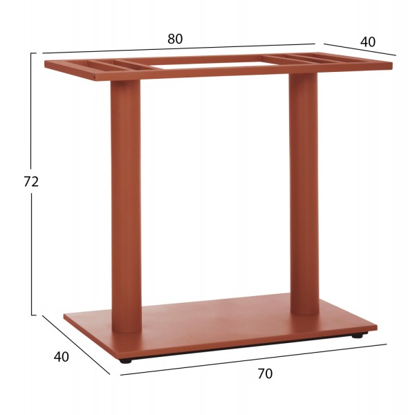 Αυτή είναι μια βάση/πόδια για τραπέζι σε ΤΕΡΑΚΟΤΑ χρώμα (Morandi pink brown). Είναι μεταλλική με δύο κολώνες (πόδια) τα οποία στηρίζονται σε μια επίπεδη μεταλλική επιφάνεια. Το χαρακτηριστικό που κάνει αυτή την βάση ιδιαίτερα πρακτική είναι ότι στο κάτω μέρος της διαθέτει ρυθμιστές ύψους (ρεγουλατόρους). Ιδανική πρόταση για συνδυασμό με επιφάνειες σχεδόν κάθε είδους, όπως βερσαλίτες, HPL, MDF, κτλ.
