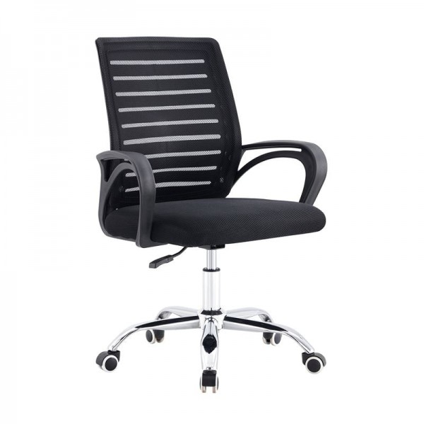 BF2140 Πολυθρόνα Γραφείου Μέταλλο Χρώμιο, Mesh Μαύρο
