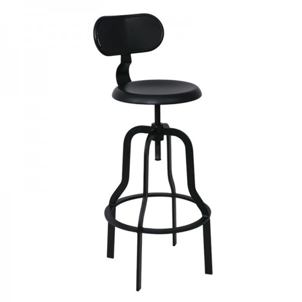 Σκαμπό BAR με Πλάτη, Μέταλλο Βαφή Μαύρο, Ύψος Ρυθμιζόμενο, Περιστρεφόμενο