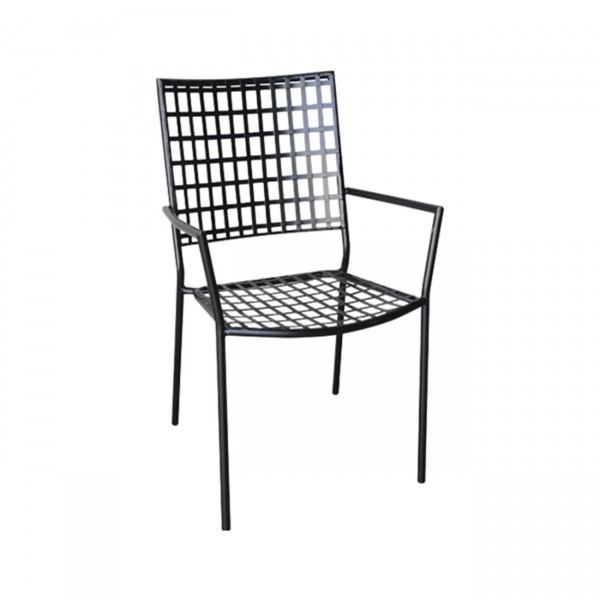 Πολυθρόνα Μέταλλο Mesh Βαφή Μαύρο, Στοιβαζόμενη