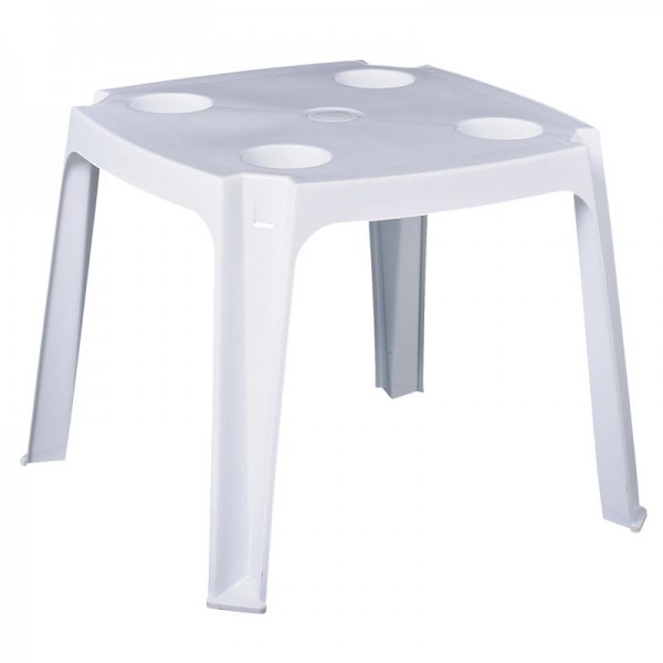 Τραπεζάκι Βοηθητικό - Ξαπλώστρας, Στοιβαζόμενο, PP Άσπρο, Ποτηροθήκες+Ομπρελοθήκη