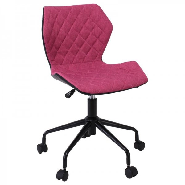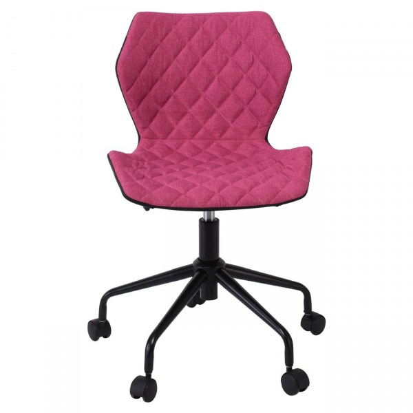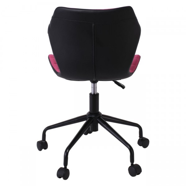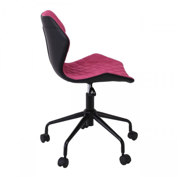 Καρέκλα Γραφείου PU Μαύρο, Ύφασμα Ροδί, Βάση Μέταλλο Βαφή Μαύρο