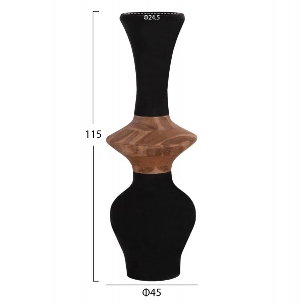 Το χειροποίητο διακοσμητικό βάζο δαπέδου NEBULA είναι ένα πολύ ιδιαίτερο διακοσμητικό στοιχείο για κάθε χώρο. Είναι κατασκευασμένο εξολοκλήρου από Fiber Cement σε ΜΑΥΡΟ χρώμα με διακόσμηση στον λαιμό από ποιοτικό ξύλο Teak, ενώ το ύψος του το καθιστά επιβλητικό στον χώρο. Ιδανικό για πληθώρα χρήσεων και χώρων.
