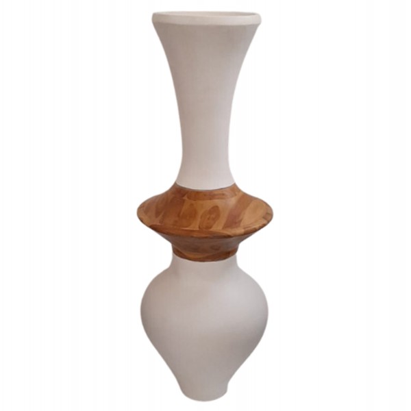 Το χειροποίητο διακοσμητικό βάζο δαπέδου NEBULA είναι ένα πολύ ιδιαίτερο διακοσμητικό στοιχείο για κάθε χώρο. Είναι κατασκευασμένο εξολοκλήρου από Fiber Cement σε ΛΕΥΚΟ χρώμα με διακόσμηση στον λαιμό από ποιοτικό ξύλο Teak, ενώ το ύψος του το καθιστά επιβλητικό στον χώρο. Ιδανικό για πληθώρα χρήσεων και χώρων.