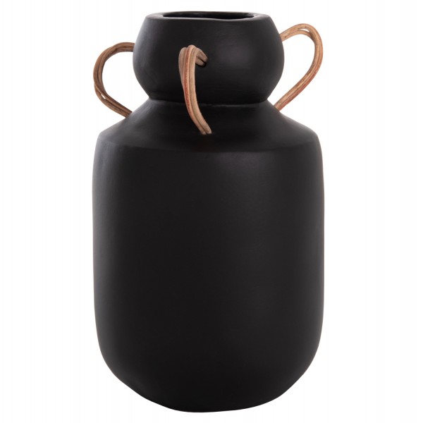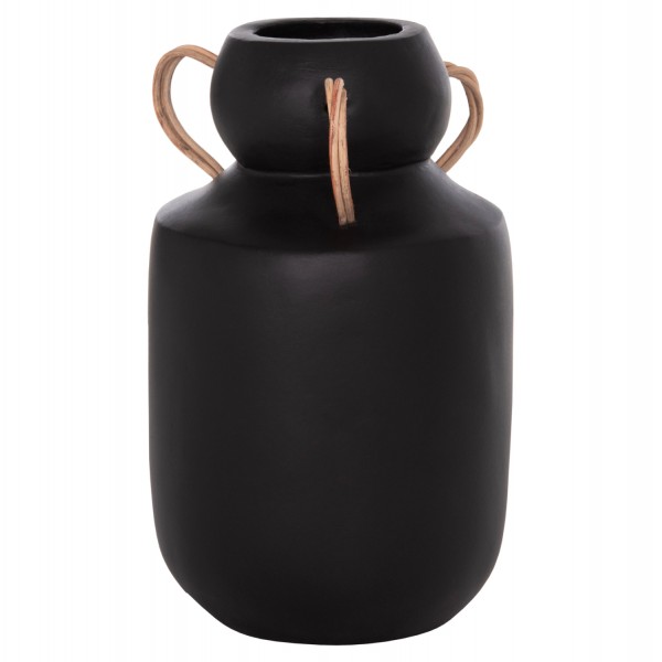 Το διακοσμητικό βάζο MIBO έχει κλασικό σχήμα ενώ διαθέτει χερούλια στο επάνω μέρος από φυσικό rattan. Είναι σε ΜΑΥΡΗ απόχρωση και μπορεί να ταιριάξει οπουδήποτε το θελήσετε. Είτε στο σπίτι είτε σε επαγγελματικούς χώρους.