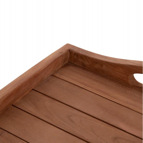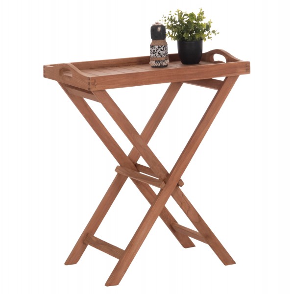 Ο δίσκος σερβιρίσματος BARNABY στηρίζεται σε μια πτυσσόμενη βάση, έτσι ώστε να μπορείτε να την μεταφέρετε εύκολα μεγιστοποιώντας την πρακτικότητα του! Το σετ είναι κατασκευασμένο εξολοκλήρου από ποιοτικό ξύλο Teak σε ΦΥΣΙΚΟ χρώμα, και θα αποτελέσει ένα «στολίδι» στην υπηρεσία σας! Ιδανικό για επαγγελματική χρήση σε εξωτερικούς χώρους, όπως μπαλκόνια και αίθρια, σε ξενοδοχεία, χώρους εστίασης κτλ.