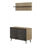Το σετ εισόδου DELPHINE αποτελείται από μια παπουτσοθήκη-ντουλάπι με ψηλά πόδια με δύο πόρτες και ενιαίο χώρο αποθήκευσης και μια κρεμάστρα τοίχου με ράφι. Η κρεμάστρα διαθέτει 4 διπλά σημεία κρέμασης ενώ το ράφι προσδίδει επιπλέον πρακτικότητα στο σετ. Ένα σετ μελαμίνης με βολικές διαστάσεις σε χρώμα ΦΥΣΙΚΟ ΞΥΛΟΥ-ΜΑΥΡΟ ΜΑΡΜΑΡΟ που θα σας ενθουσιάσει, μιας και σας επιτρέπει να διατηρείτε τον χώρο υποδοχής σας οργανωμένο και τακτοποιημένο. ΔΙΑΣΤΑΣΕΙΣ: 80x31,5x52Υ εκ. Αποθ. χώροι: 76,5x28x38Υ εκ. Ράφι κρεμάστρας: Μήκος: 80εκ Βάθος ραφιού: 14,5 εκ. Ύψος: 29,5 εκ. Ύψος ποδιών: 10 εκ. ΥΛΙΚΑ ΚΑΤΑΣΚΕΥΗΣ: Το σετ εισόδου είναι κατασκευασμένο από μελαμίνη πάχους 15mm. Η μελαμίνη είναι είδος ξύλου σε μορφή μοριοσανίδας(panel). Ως υλικό είναι πολύ ανθεκτικό και με μεγάλη σκληρότητα. Άρα, πρόκειται για ένα συνθετικό υλικό με πολύ σκληρή επιφάνεια, με αποτέλεσμα να είναι πολύ ανθεκτική στις γρατζουνιές, στην τριβή και τους λεκέδες. Τα πόδια της παπουτσοθήκης είναι κατασκευασμένα από μασίφ ξύλο. ΣΥΝΤΗΡΗΣΗ: Η μελαμίνη καθαρίζεται πάρα πολύ εύκολα από τους λεκέδες χάρη στην σκληρή της επιφάνεια. Μπορείτε να σκουπίσετε όλες τις επιφάνειες με ένα υγρό πανί και αυτό είναι αρκετό. Σε επίμονους λεκέδες μπορείτε να χρησιμοποιήσετε ένα ήπιο καθαριστικό. *Το προϊόν παραδίδεται αμοντάριστο σε εργοστασιακές συσκευασίες ** Η χρωματική απόδοση του προϊόντος ενδέχεται να διαφέρει ελαφρώς σε σχέση με την φωτογραφική απεικόνισή του στην οθόνη σας.