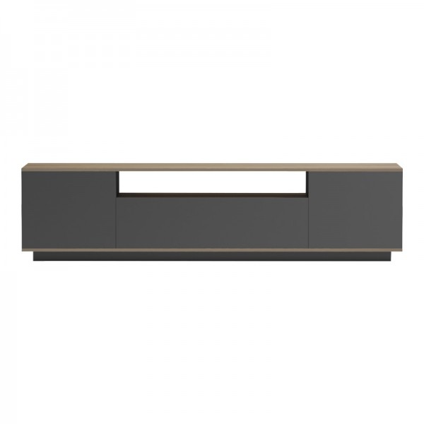 Φέρει ακόμα δύο ράφια ιδανικά για τον αποκωδικοποιητή ή άλλες συσκευές, προσφέροντας εύκολη πρόσβαση. Επιπλέον, υπάρχουν και ανοιχτοί χώροι στις άκρες, δίπλα στα ντουλάπια, ιδανικοί για βιβλία, διακοσμητικά ή μικρά φυτά, προσθέτοντας προσωπικότητα στο έπιπλο.