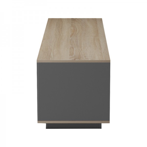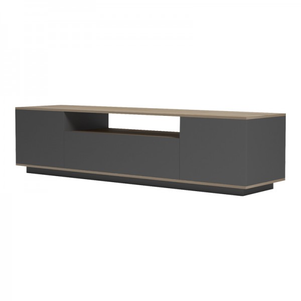 Αναβαθμίστε την ψυχαγωγική σας γωνιά με αυτό το σύγχρονο και ευέλικτο έπιπλο τηλεόρασης, σχεδιασμένο για να προσφέρει τόσο στυλ όσο και άφθονο αποθηκευτικό χώρο. Ο συνδυασμός του γκρι φινιρίσματος με τη ζεστή απόχρωση του ξύλου δημιουργεί μια αισθητική που ταιριάζει άψογα σε μοντέρνους και μινιμαλιστικούς χώρους.