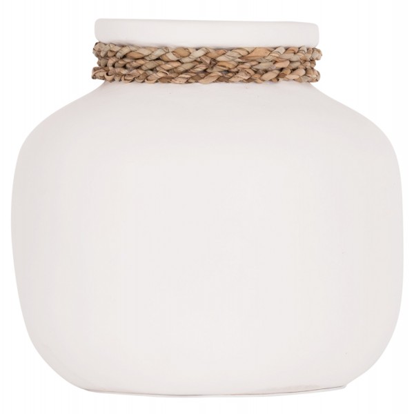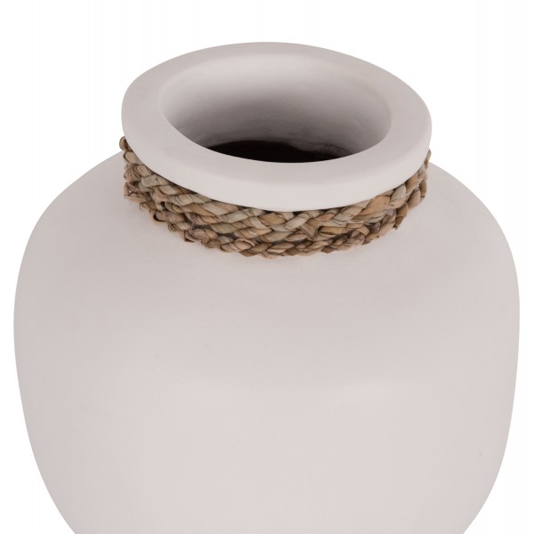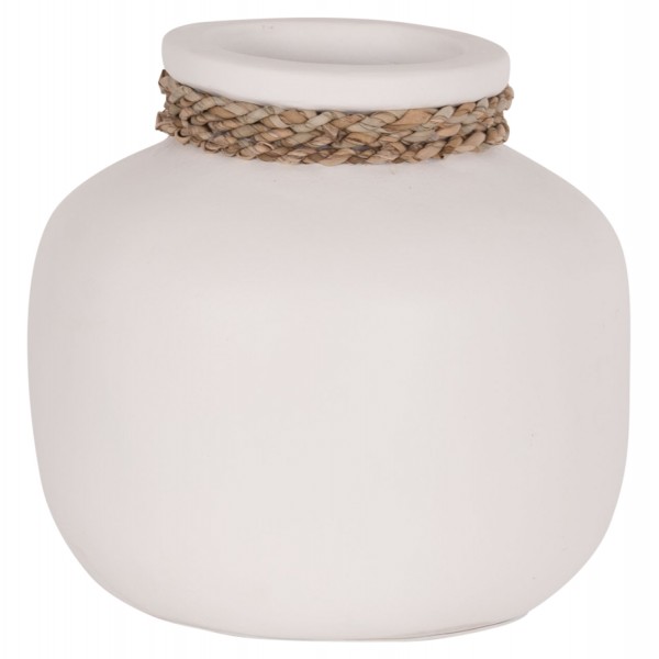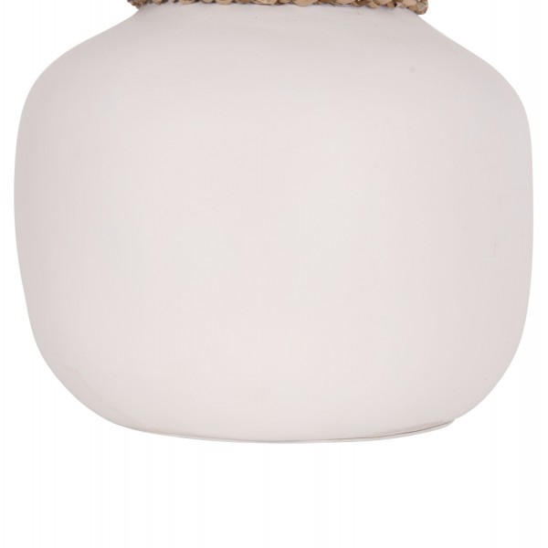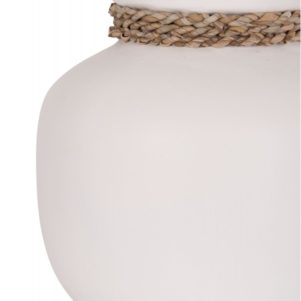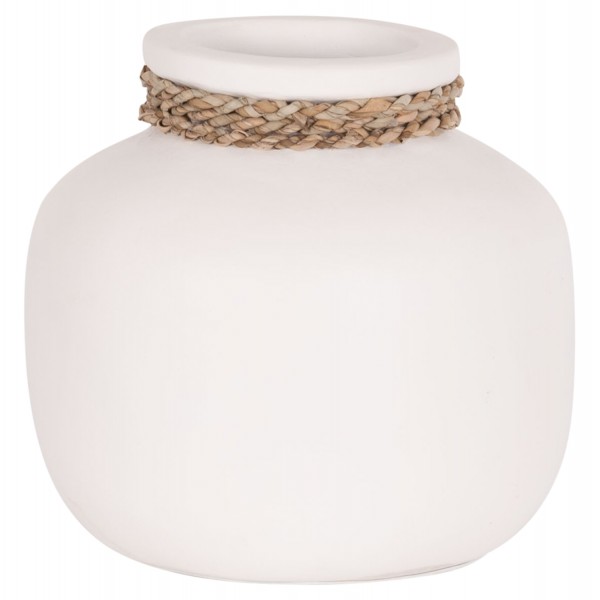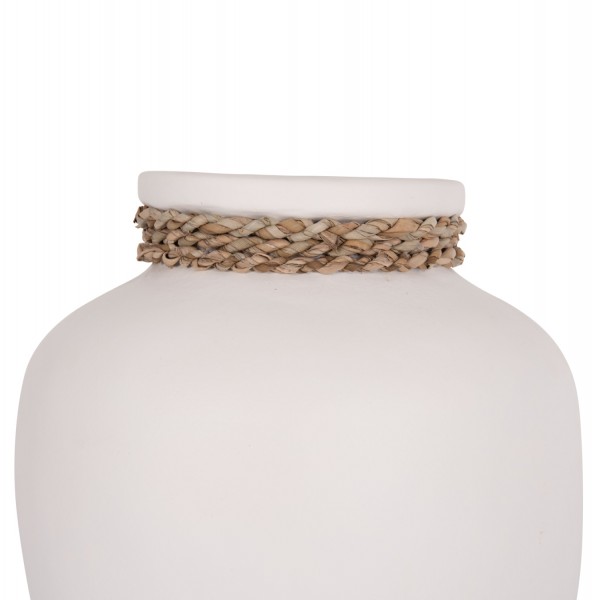 Το επιτραπέζιο χειροποίητο διακοσμητικό βάζο CAMMER είναι κατασκευασμένο εξολοκλήρου από τερακότα σε ΛΕΥΚΟ χρώμα ενώ διαθέτει διακοσμητική πλέξη από rattan περιμετρικά στον «λαιμό» του βάζου. Ιδανικό για πληθώρα χώρων, τόσο για το σπίτι, όσο και για επαγγελματικούς χώρους.