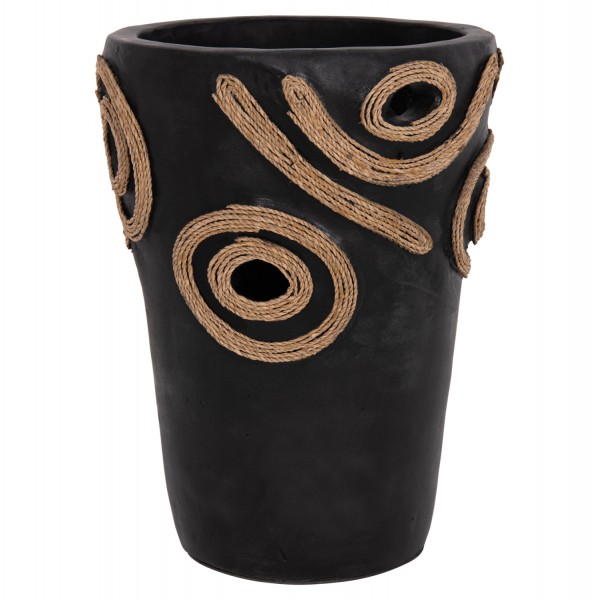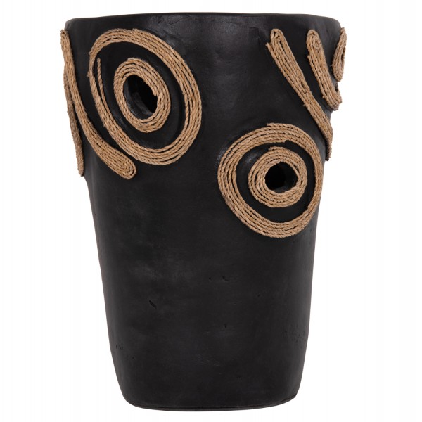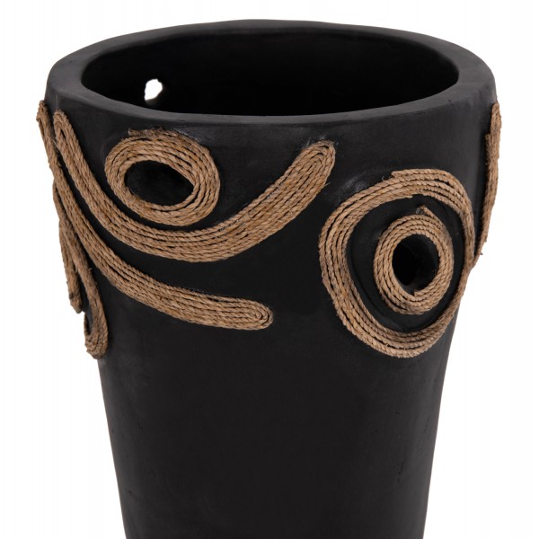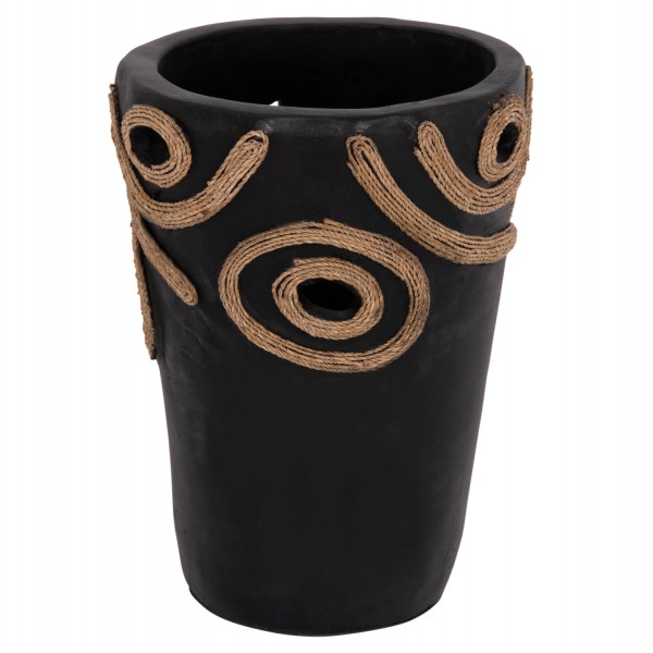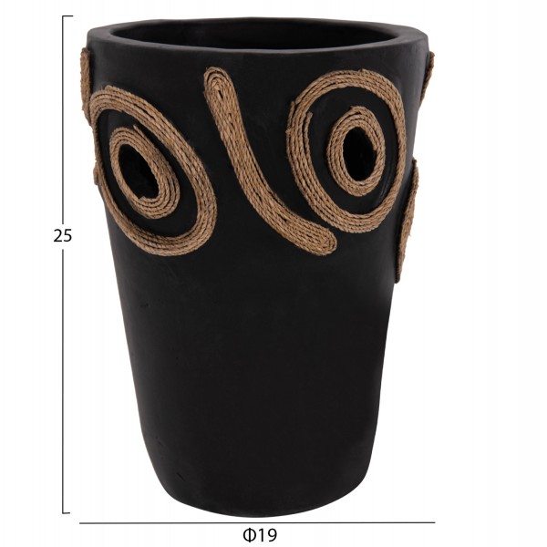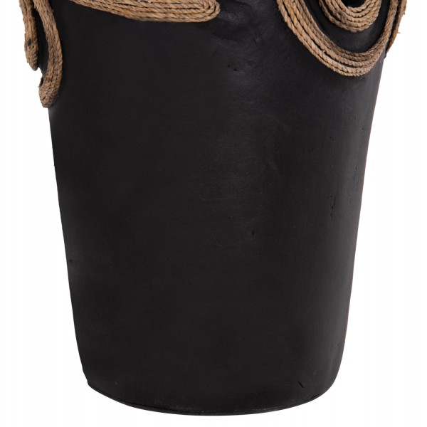 Το επιτραπέζιο χειροποίητο διακοσμητικό βάζο DEAN είναι λιτό σε κλασσικό σχέδιο. Είναι κατασκευασμένο εξολοκλήρου από τερακότα σε ΜΑΥΡΟ χρώμα ενώ διαθέτει διακοσμητικά σχέδια από σχοινί κολλημένο στις πλευρές του βάζου. Ιδανικό για πληθώρα χώρων, τόσο για το σπίτι, όσο και για επαγγελματικούς χώρους.