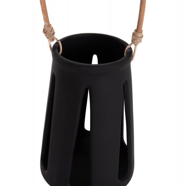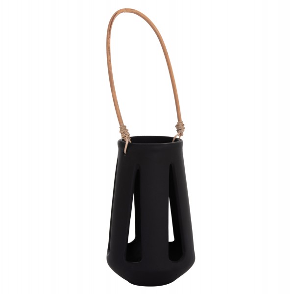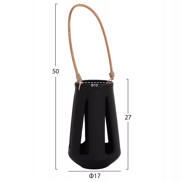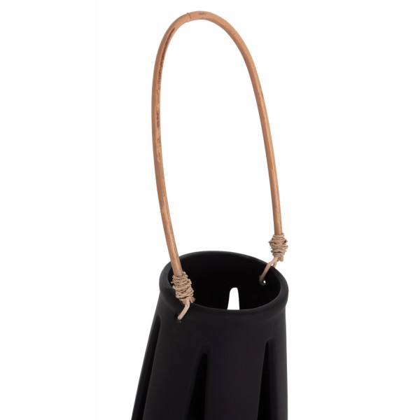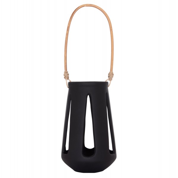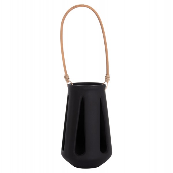 Το επιτραπέζιο διακοσμητικό φανάρι ERANTYL είναι κατασκευασμένο από Fiber Cement σε ΜΑΥΡΟ χρώμα και διαθέτει χερούλι από φυσικό rattan για εύκολη μεταφορά. Το Fiber Cement ΔΕΝ είναι εύφλεκτο, που σημαίνει ότι μπορείτε να τοποθετήσετε αρκετά είδη κεριών, ωστόσο συνιστάται ΠΑΝΤΑ αυτό να γίνεται με μεγάλη προσοχή.