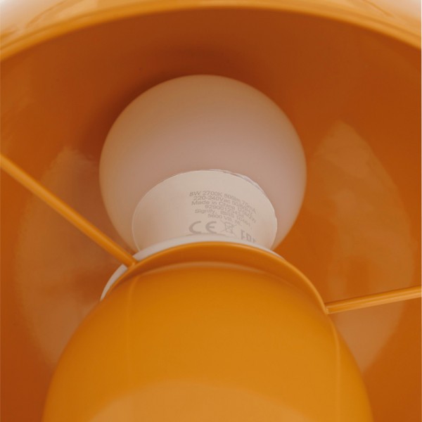 Προσθέστε μια τολμηρή και στιλάτη πινελιά στον χώρο σας με αυτό το εντυπωσιακό επιτραπέζιο φωτιστικό σε σχήμα μανιταριού. Εμπνευσμένο από τον εμβληματικό σχεδιασμό των μέσων του 20ού αιώνα (mid-century modern) και του pop art, αυτό το φωτιστικό ξεχωρίζει με τις οργανικές του φόρμες και το μονόχρωμο κίτρινου χρώμα του.Η απαλή, διάχυτη λάμψη που προσφέρει δημιουργεί μια ζεστή και φιλόξενη ατμόσφαιρα, ιδανική για να φωτίσει διακριτικά ένα κομοδίνο, ένα βοηθητικό τραπέζι στο σαλόνι, ένα ράφι ή ένα γραφείο. Το ιδιαίτερο σχήμα του και το μοναδικό του χρώμα το καθιστούν ένα statement κομμάτι που θα αναβαθμίσει αισθητικά κάθε μοντέρνο, μινιμαλιστικό ή ρετρό χώρο.Τεχνικά χαρακτηριστικά:
