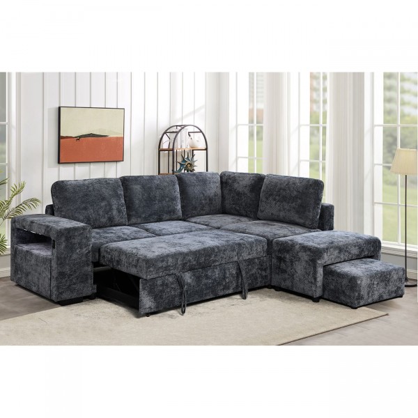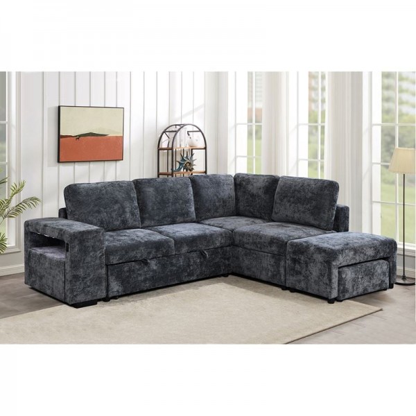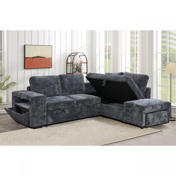 FLEXY Καναπές Αριστερή Γωνία - Κρεβάτι, με Χώρους Αποθήκευσης φωτιζόμενο, Ύφασμα Ανθρακί