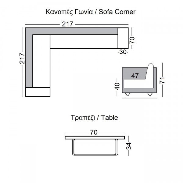 Εξωτερικές Διαστάσεις : 217x217x70cm