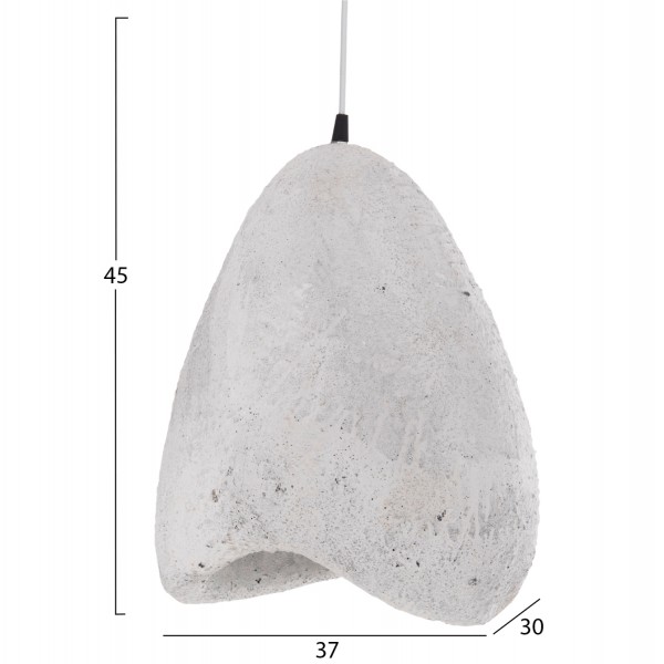 Αυτό το κρεμαστό φωτιστικό οροφής σε σχήμα πέτρας είναι κατασκευασμένο από RESIN (ΡΗΤΙΝΗ) υλικό σε ΛΕΥΚΟ χρώμα και διαχέει τον φωτισμό απαλά στο χώρο, δημιουργώντας μια όμορφη ατμόσφαιρα. Αποτελεί κυρίως διακοσμητικό στοιχείο στον χώρο και απαιτεί ανάλογο περιβάλλον.