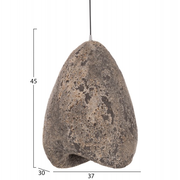 Το STONER (S) είναι ένα ιδιαίτερο κρεμαστό φωτιστικό οροφής που ξεχωρίζει χάρη στο μοναδικό του σχήμα που θυμίζει φυσική πέτρα. Κατασκευασμένο από ρητίνη (resin) σε γκριζωπό χρωματισμό με φυσική υφή, δημιουργεί ένα εντυπωσιακό διακοσμητικό στοιχείο που προσθέτει χαρακτήρα και αυθεντικότητα στον χώρο. Ο οργανικός σχεδιασμός του το καθιστά ιδανικό για σύγχρονους, minimal ή industrial χώρους που αναζητούν φωτιστικά με έντονη προσωπικότητα. Περισσότερο από ένα απλό φωτιστικό, το STONER λειτουργεί ως statement διακοσμητικό που δημιουργεί μια ιδιαίτερη ατμόσφαιρα φωτισμού.
