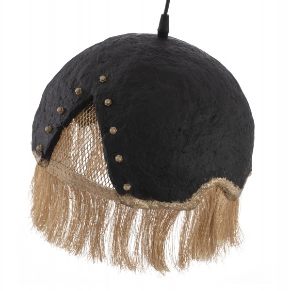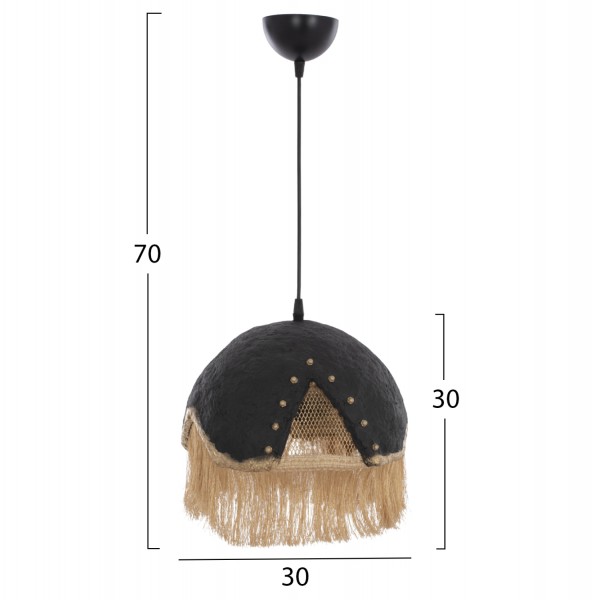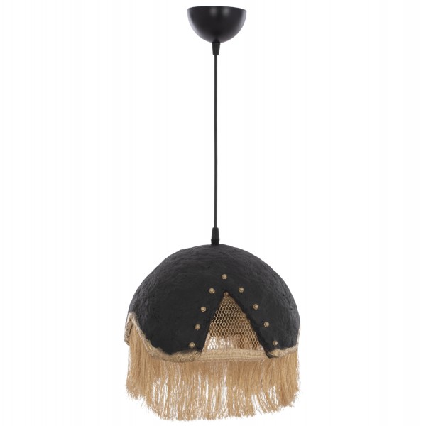 Hm7693.01-κρεμαστό φωτιστικό ----Αφήστε το φως να απλωθεί στον χώρο με ένα πρωτότυπο μονόφωτο οροφής, ολοκληρώνοντας την διακόσμησή σας. Το «καπέλο» του φωτιστικού αποτελείται από ένα σφαιρικό κομμάτι σε ιδιαίτερο ημισφαιρικό σχήμα και είναι η επιτομή του μοντέρνου design. Η διαφορετική «πινελιά» αυτού του κρεμαστού μονόφωτου είναι το χρυσό μεταλλικό πλέγμα στο εσωτερικό μέρος και τα μπεζ κρόσια που ολοκληρώνουν αισθητικά αυτό το πολύ ιδιαίτερο φωτιστικό.