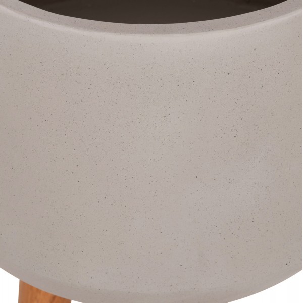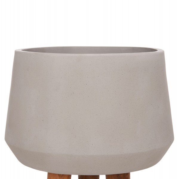 Η φαρδιά γλάστρα εσωτερικού χώρου (κασπό) QUAN είναι κατασκευασμένη από Fiber Cement σε ΓΚΡΙ χρώμα. Το ιδιαίτερο χαρακτηριστικό της είναι ότι συνοδεύεται και τοποθετείται σε μια ψηλή σχετικά τρίποδη βάση από ξύλο teak. Κατά την χρήση της συνιστάται η τοποθέτηση εσωτερικού δοχείου για την σωστή διατήρηση της γλάστρας.