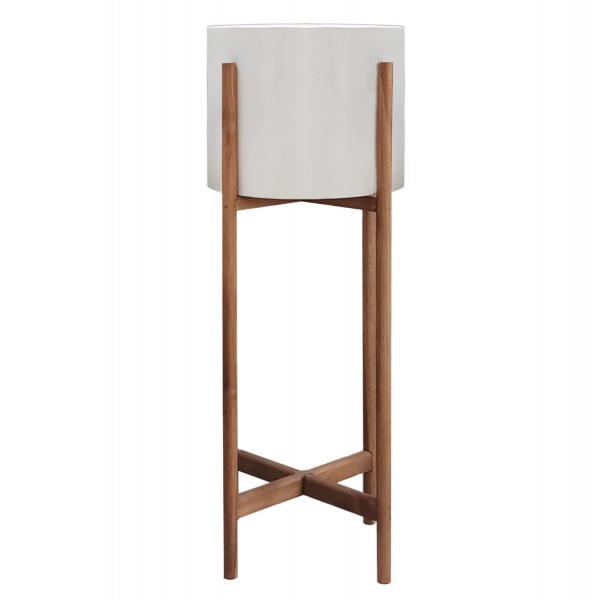 Η γλάστρα εσωτερικού χώρου (κασπό) RENTIL είναι κατασκευασμένη από Fiber Cement σε ΛΕΥΚΟ χρώμα. Το ιδιαίτερο χαρακτηριστικό της είναι ότι συνοδεύεται και τοποθετείται σε μια ψηλή χιαστί βάση από ξύλο teak.