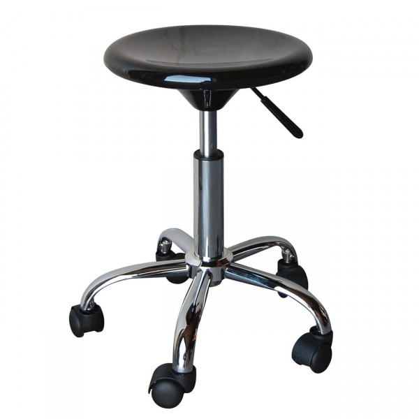 GLORY Σκαμπό, Βάση Χρώμιο, ABS Μαύρο, Ρυθμιζόμενο Ύψος, Περιστρεφόμενο, Τροχήλατο